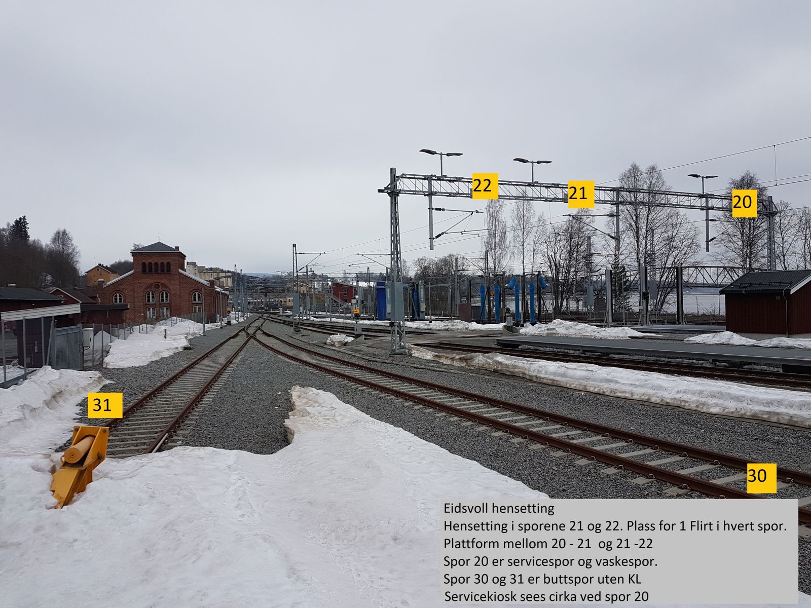 KL-anlegg | Serviceplattform | Sportilgang med bil | Toalettømming til stasjonært anlegg | Vannfylling | Togvarme | Tog-vaskemaskin | Dieselanlegg | Bremseluft | Merknader |