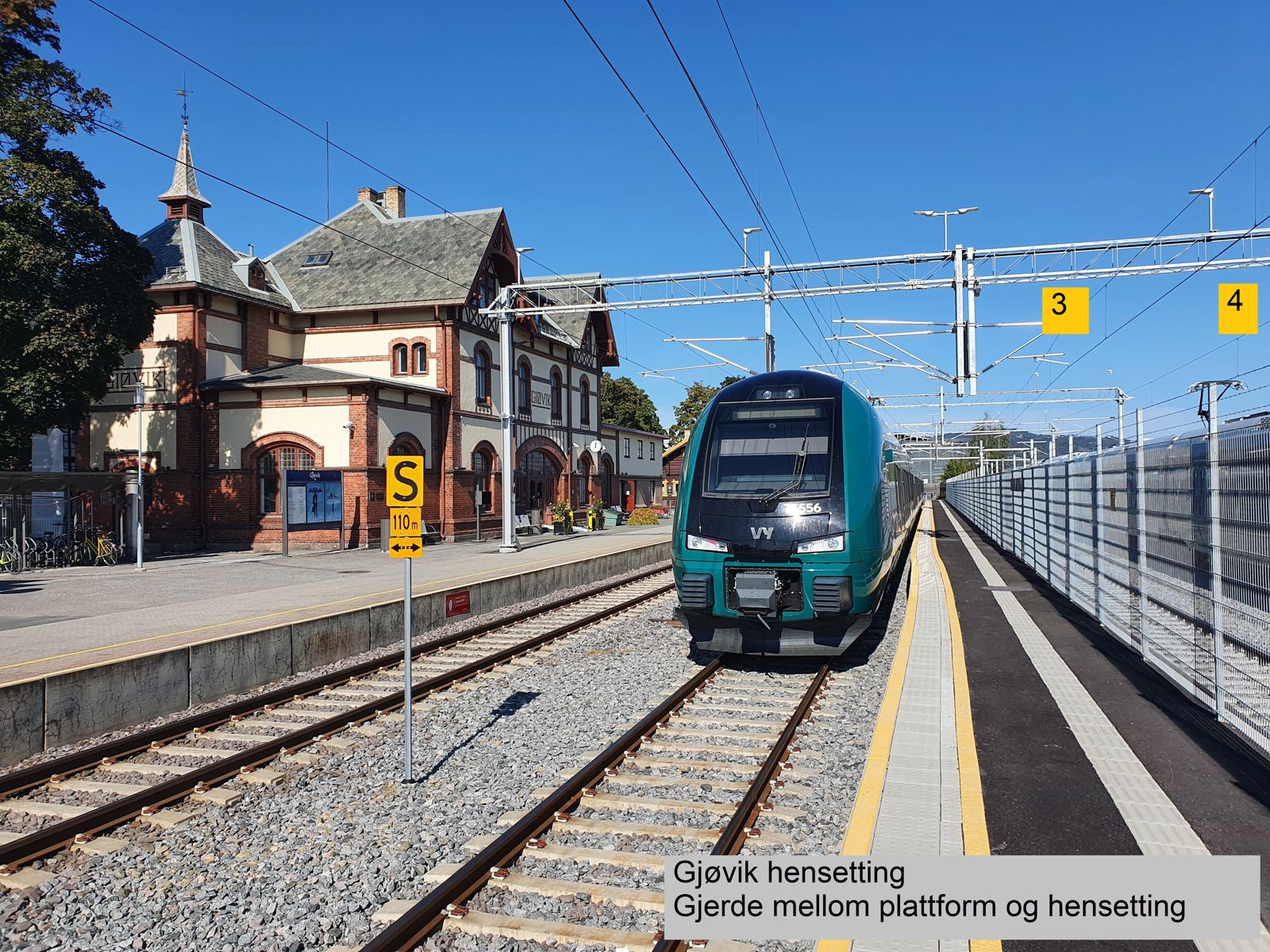Gjerde mellom plattform 2 og hensetting.