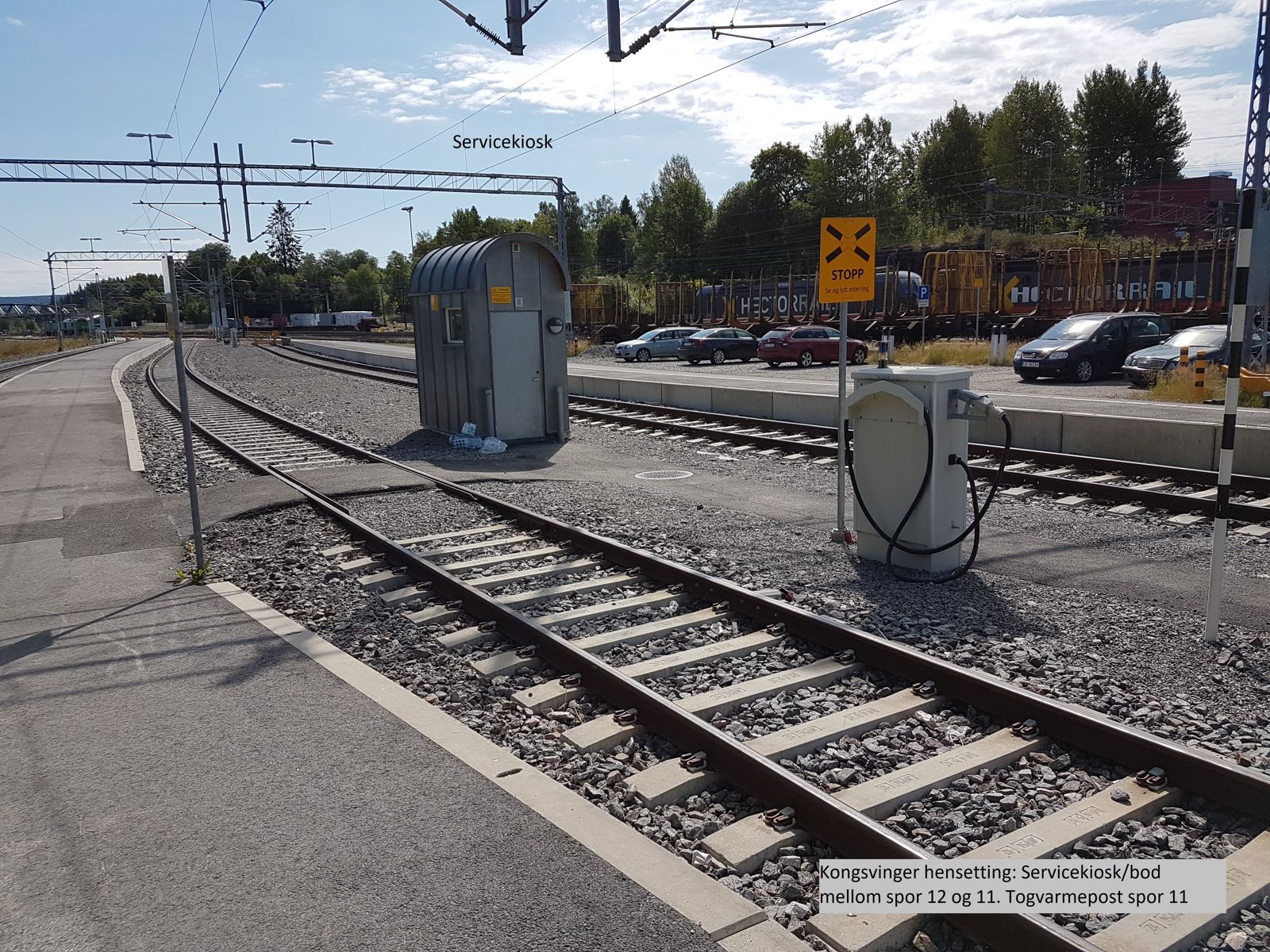 Spor 11 og spor 13 har begge serviceplattform og togvarmepost.