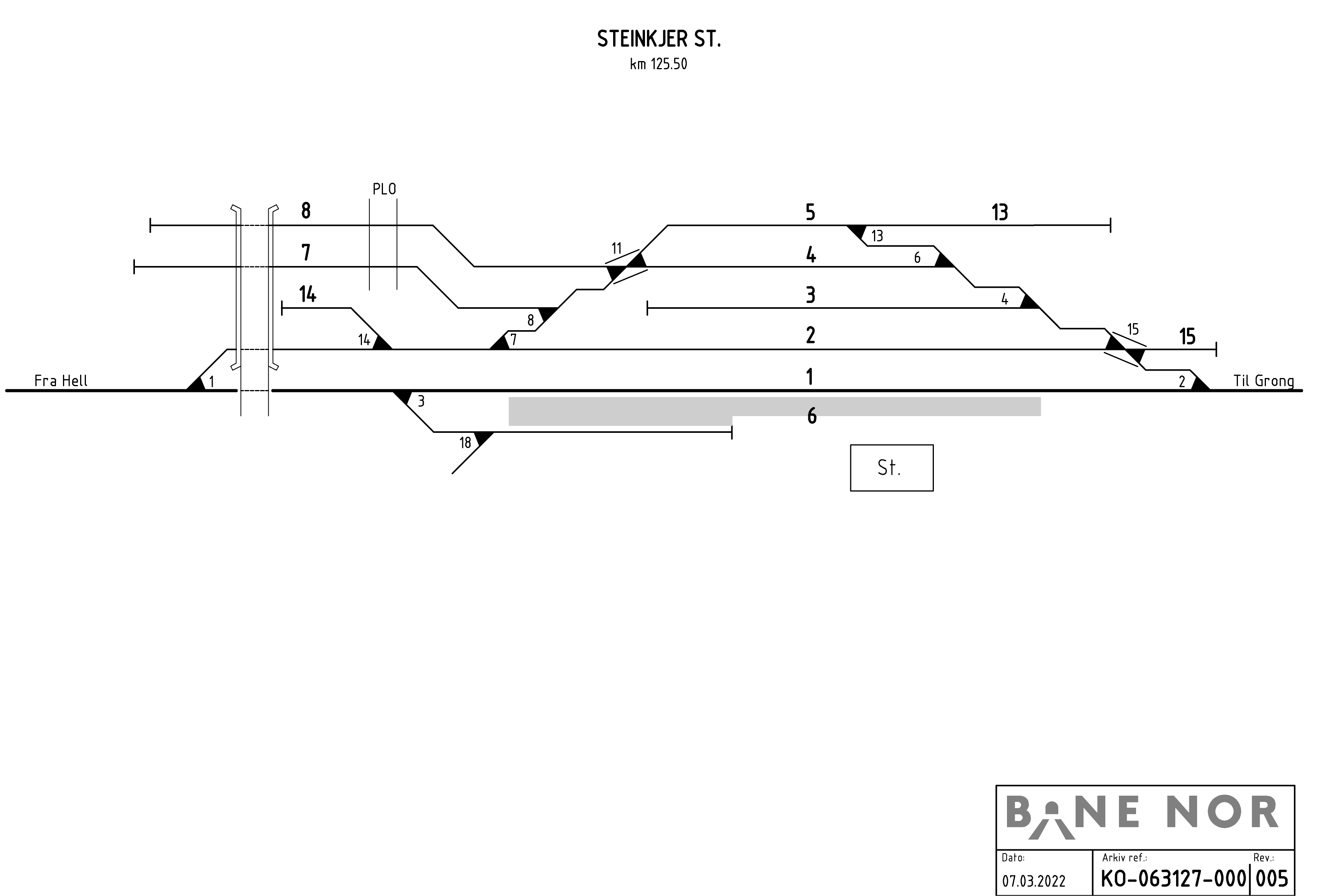 KL-anlegg Serviceplattform Sportilgang med bil Toalettømming til stasjonært anlegg Vannfylling Togvarme Tog-vaskemaskin Dieselanlegg Bremseluft Merknader