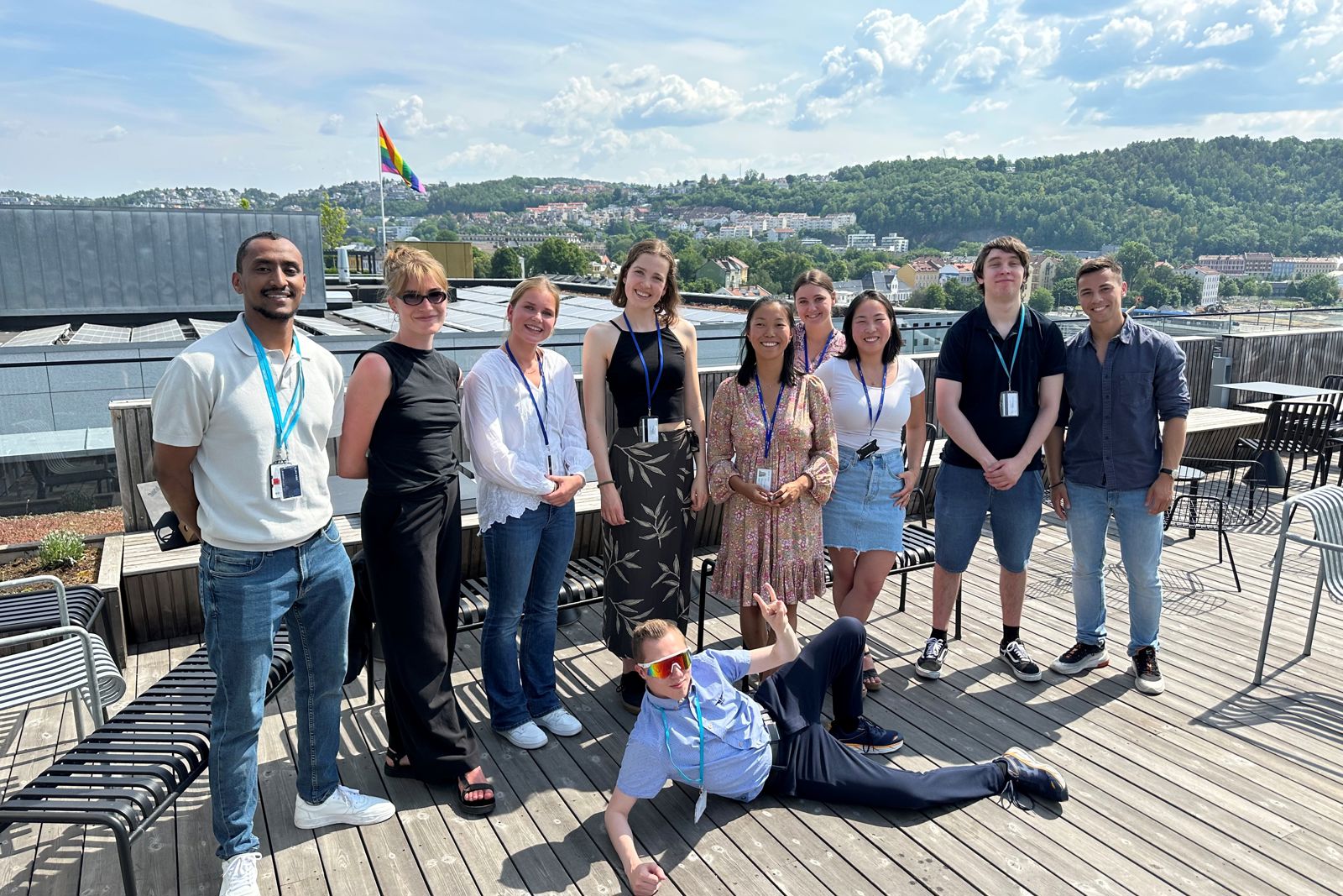 Pause på takterrassen med noen av sommerstudentene fra 2023 Foto: Benjamin Valborgland