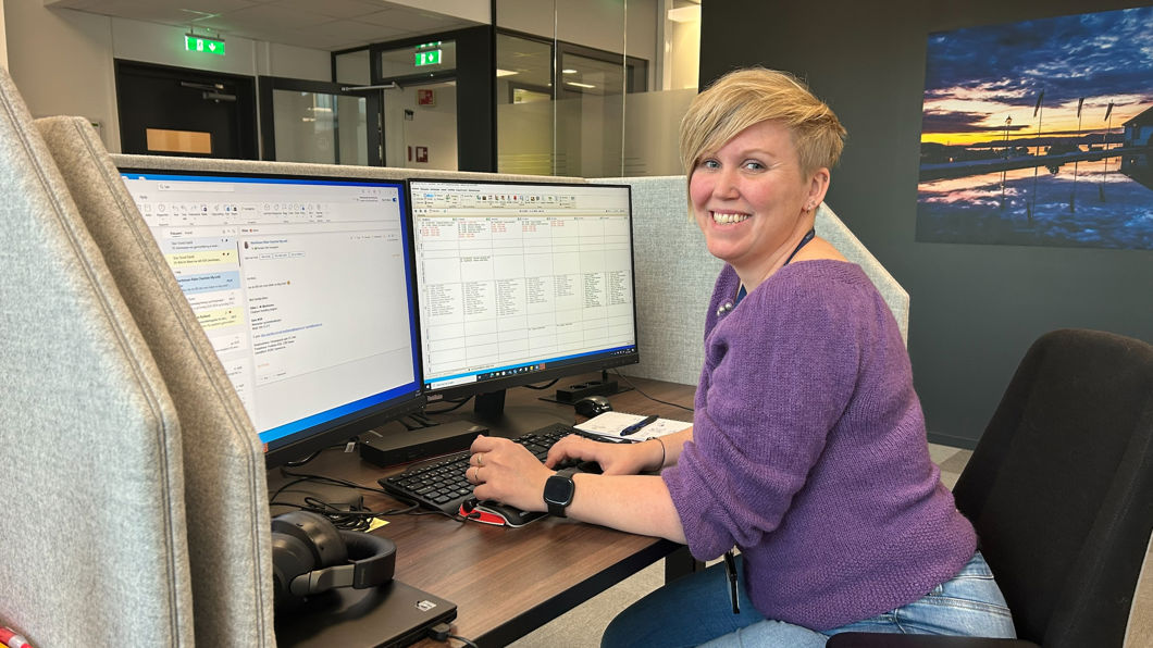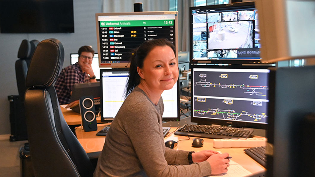 Cecilie Stensrud har jobbet i snart to år med operativ trafikkinformasjon for Bane NOR. Hun jobber ved trafikkstyringssentralen sentralt i Oslo, hvor hun bidrar til å gi tusenvis av reisende god informasjon når de reiser med tog.