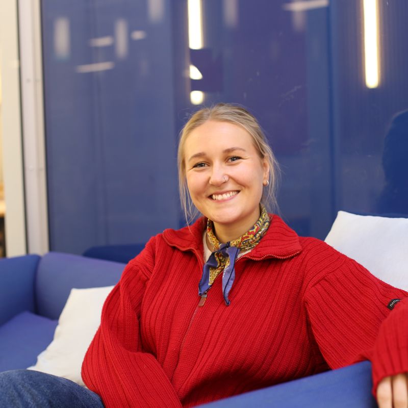 Cecilie jobber i trafikkstyringssentralen sentralt i Oslo, hvor hun bidrar til å gi tusenvis av reisende god informasjon når de reiser med tog.