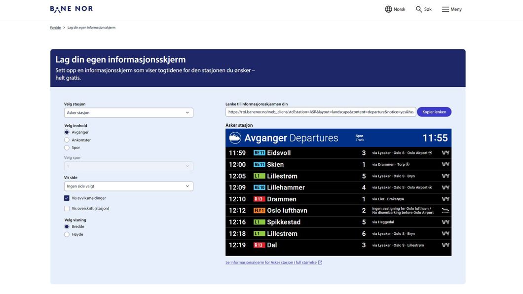 Nå kan alle som ønsker det, sette opp sin egen informasjonsskjerm som viser togtidene i sanntid for en stasjon. Se hvordan du gjør det!
