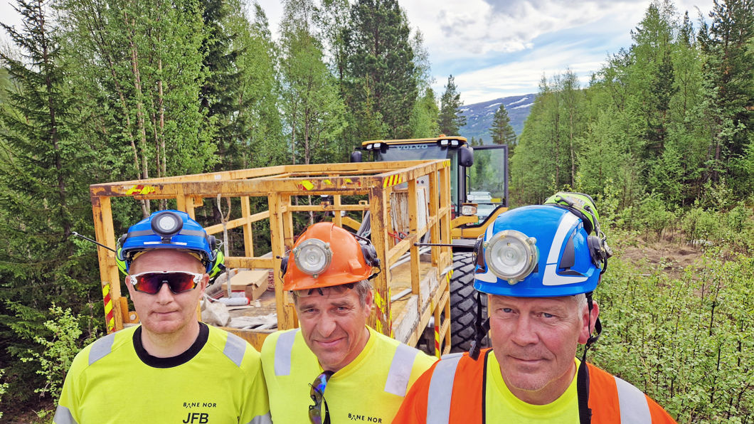 De borrer seg fire meter rett inn i fjellet. Så limes det inn lange bolter som hindrer ras og steinsprang. Vedlikehold må til for å holde jernbanen åpen mellom Bodø og Stjørdal.