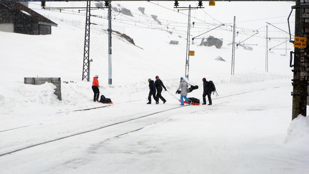 Tråkk aldri skispor i jernbanesporet. Bruk planoverganger som er trygge og lovlige. Og ta aldri med deg barna ut i skinnegangen.
