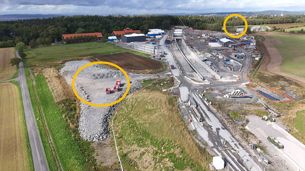 Som et miljøtiltak tar Bane NORs entreprenør MossIA i bruk et midlertidig knuseverk for stein ved Carlberg.