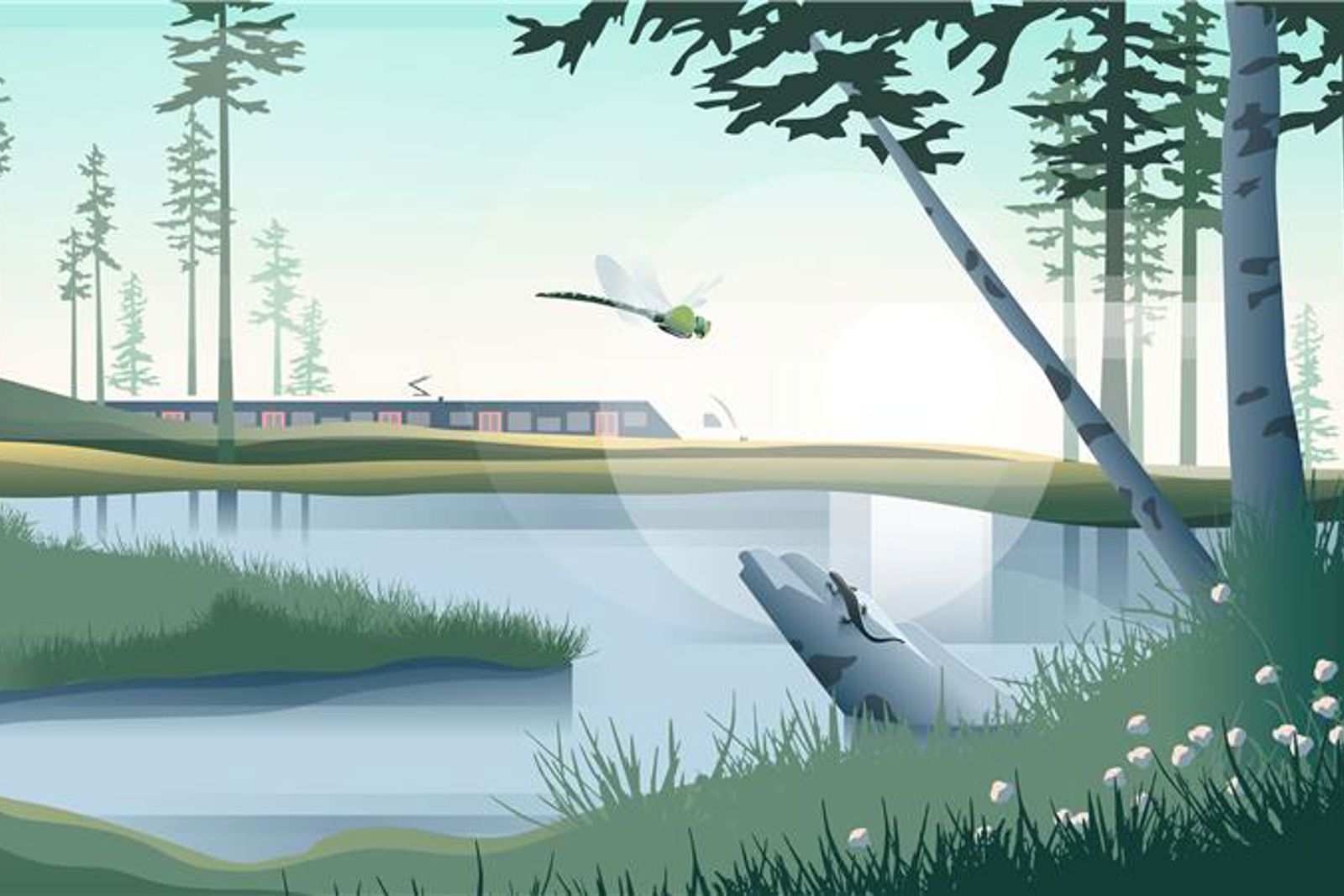Å kjøre tog er utslippsfritt. Å bygge ny jernbane er ikke det. Vi ønsker at vår aktivitet i størst mulig grad skal skje på jordas premisser. Det er ikke enkelt, og i dag er vi ikke gode nok. Vårt løfte er: vi skal stadig bli bedre. Vi skal stadig kreve mer av oss selv og våre leverandører. Derfor er satsing på jernbane satsing på en bærekraftig fremtid. Derfor ønsker vi å se deg på våre stasjoner. For når vi reiser på skinner, setter vi mindre spor.