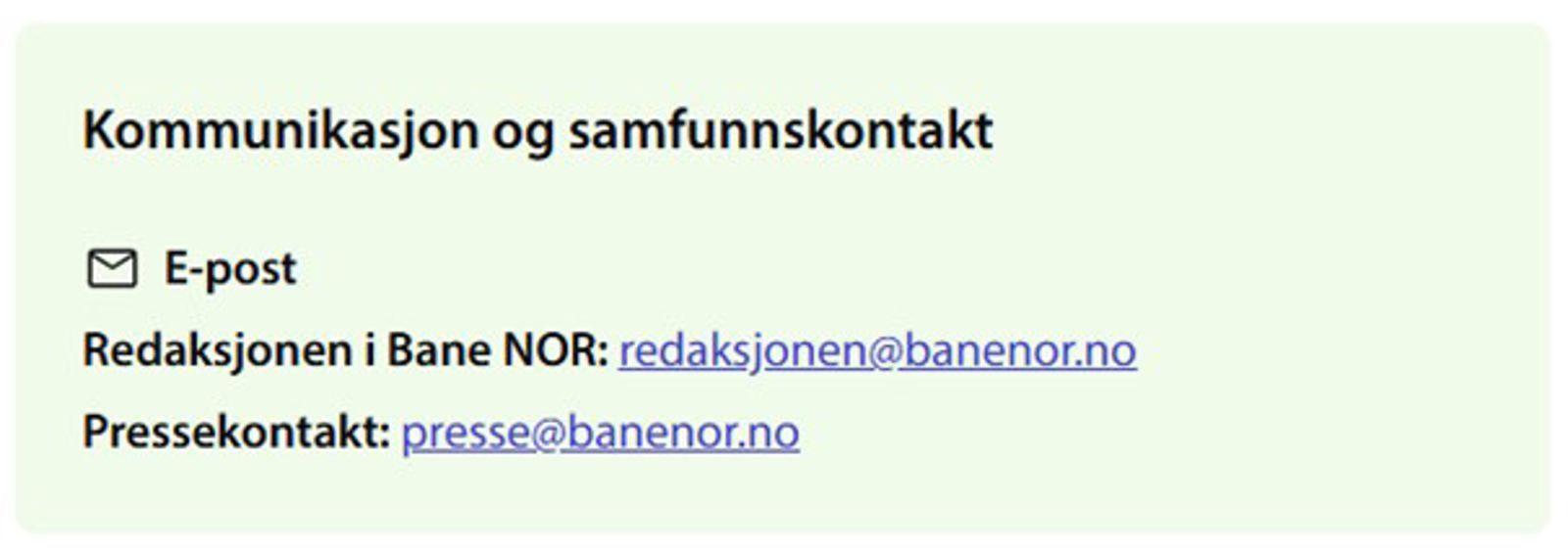 - For området for banenor.no ligger det en mappe som heter "Kontaktkort" under mappen "Bane NOR SF".