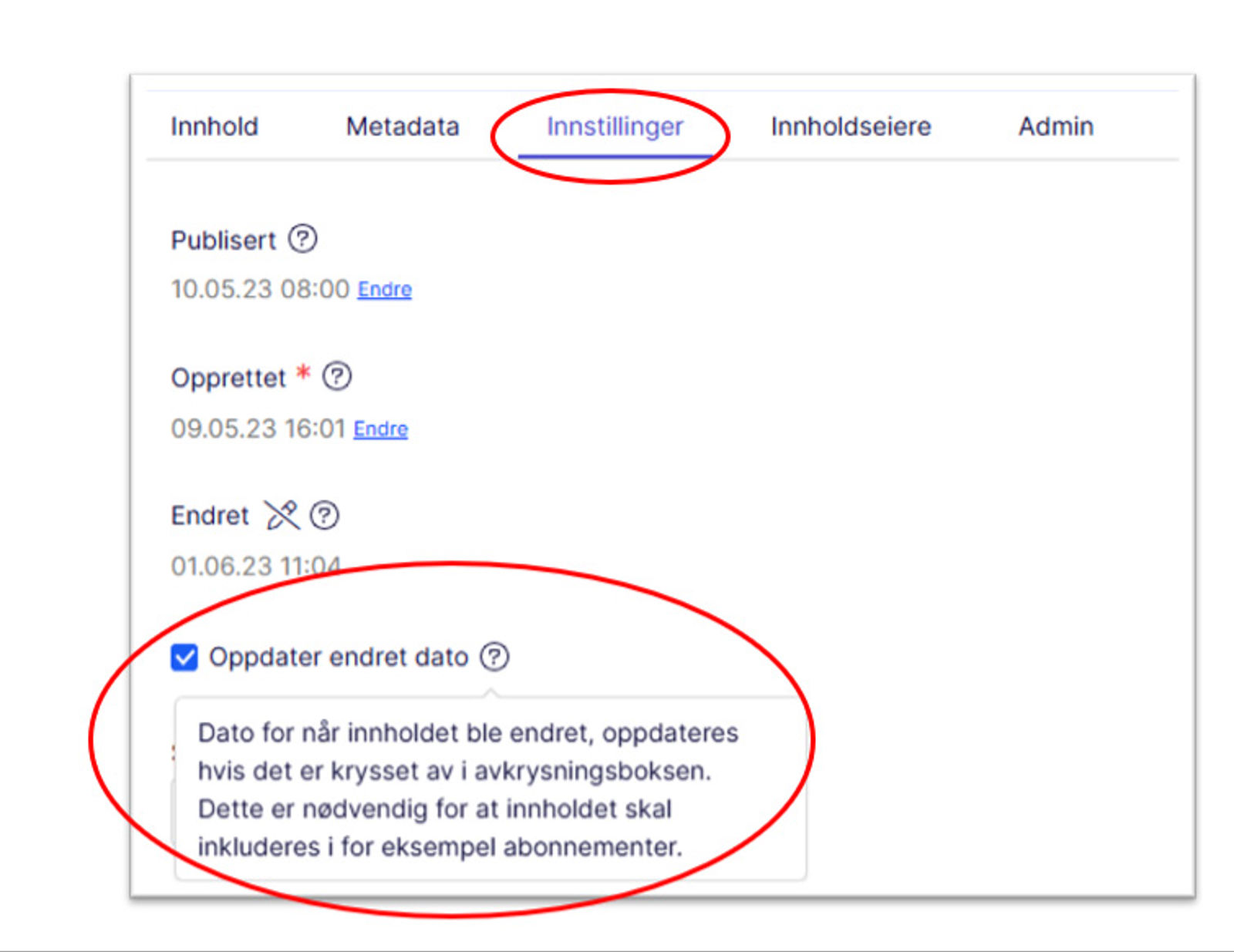 Når du gjør vesentlige endringer eller oppdateringer i en allerede publisert artikkel, skal du oppdatere datoen for når saken er endret.