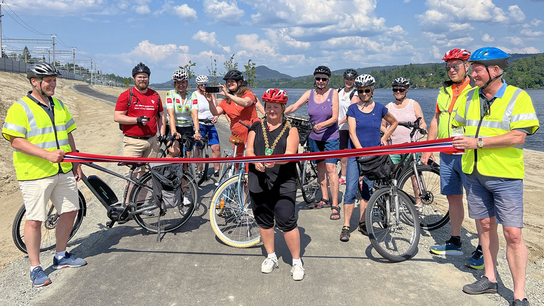 – Det er dessverre ikke mulig å åpne flere delstrekninger før hele strekningen fram til Langset er ferdigstilt, inkludert tilpasningen av den gamle jernbanebrua på Minnesund, forteller han.