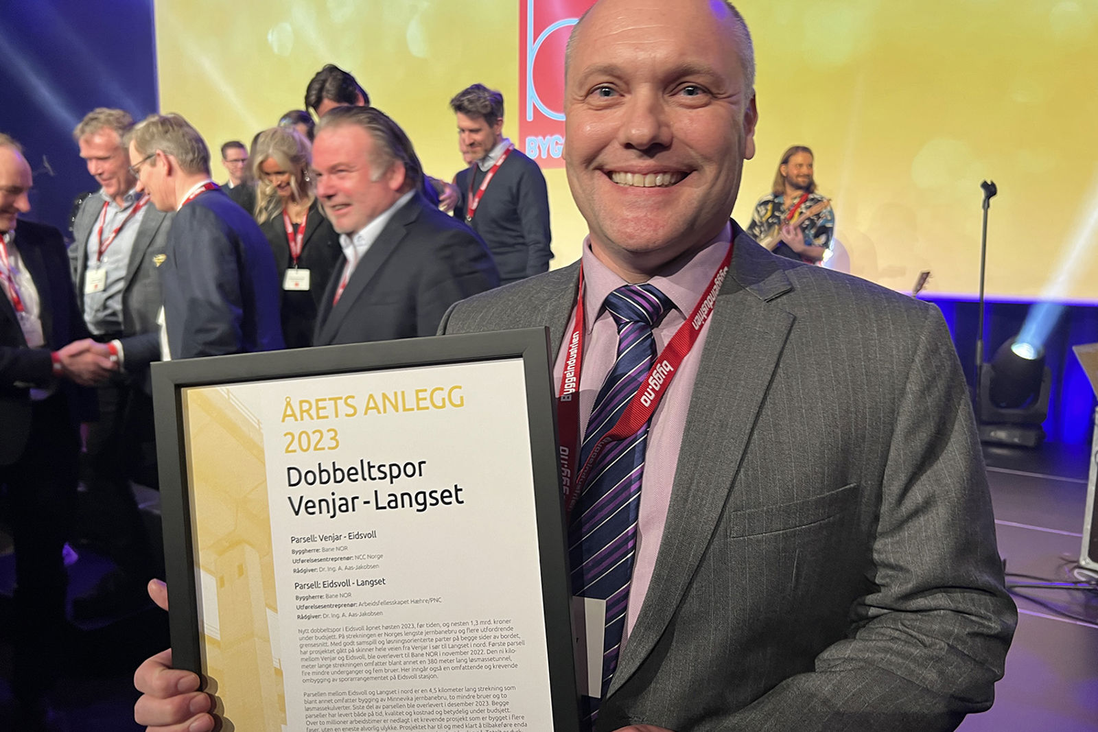 Til stor jubel ble det ferdige dobbeltsporet gjennom Eidsvoll utropt til «Årets anlegg» under Byggedagene. Prosjektsjef Andrew Croucher mottok «bransjens Oscar» i Oslo 13. mars.