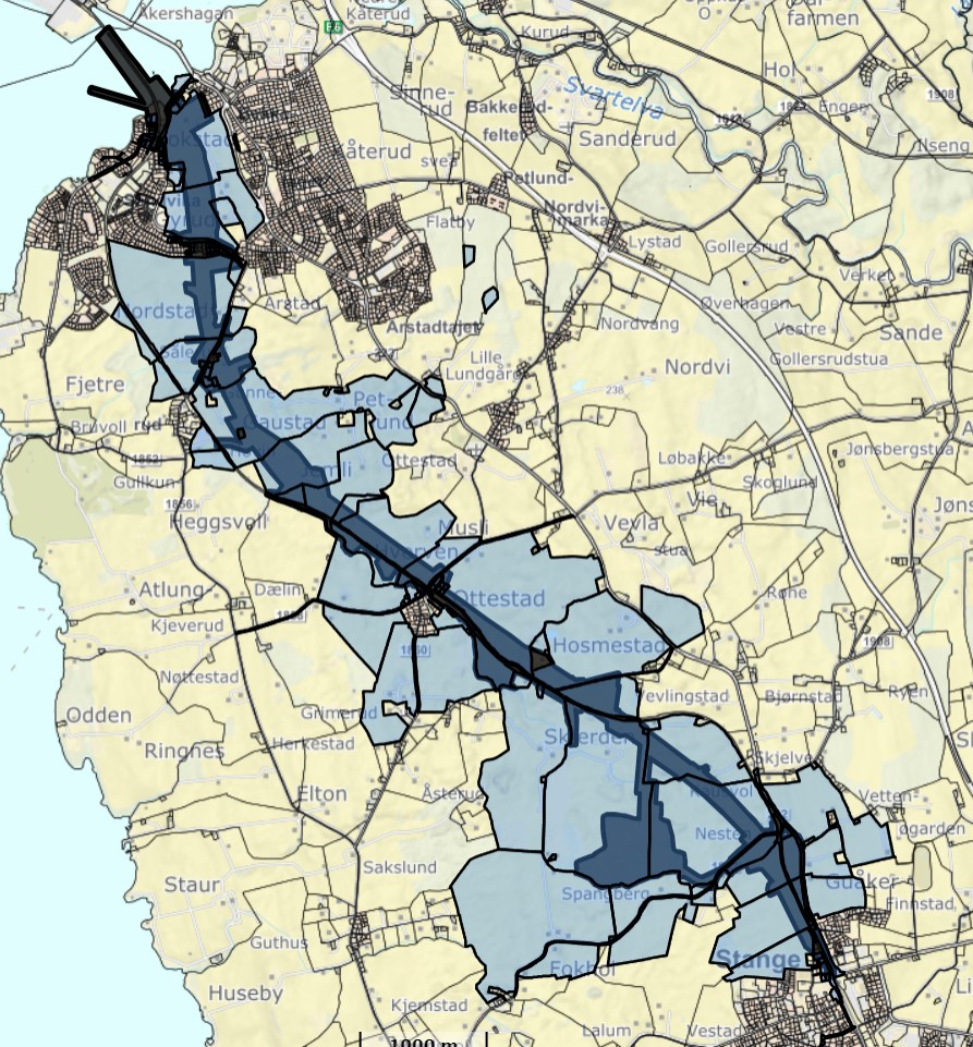 Kart over det aktuelle planområdet for nytt dobbeltspor.