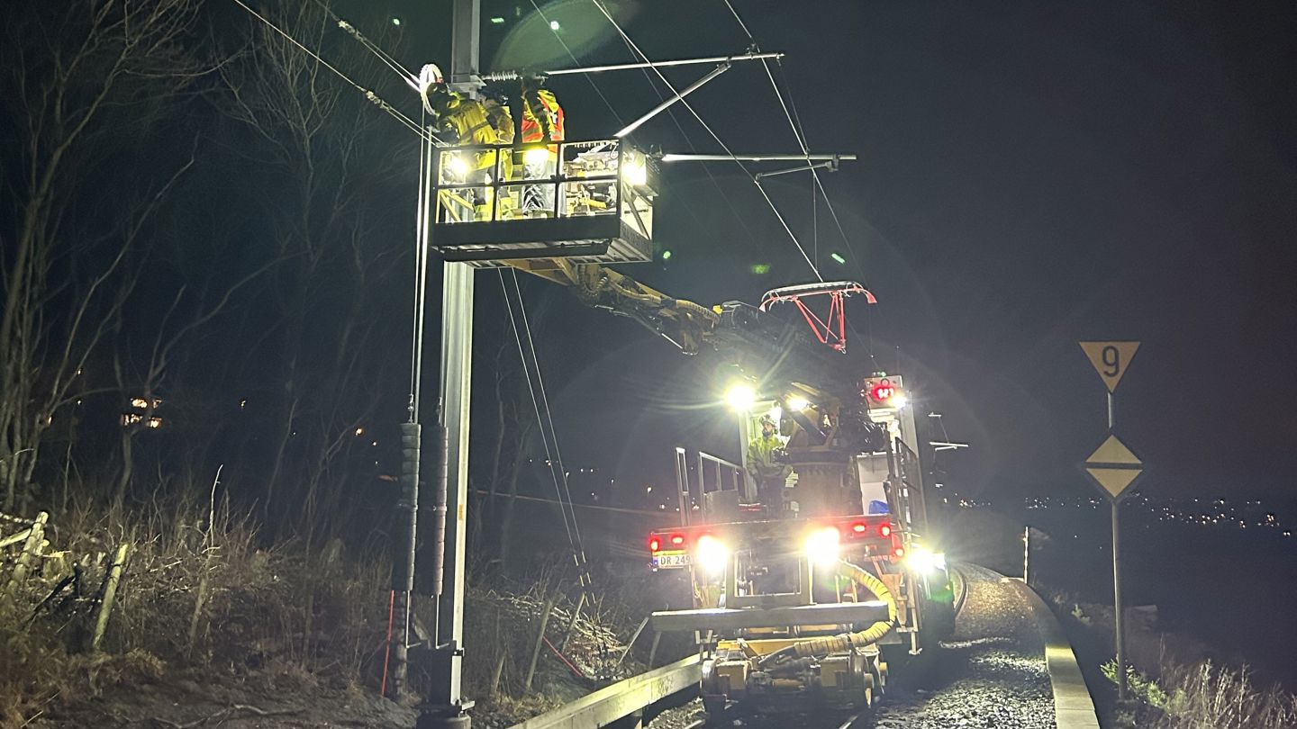 På Trønderbanen er vi nå ferdige med å bygge kontaktledningsanlegget, med unntak av strekningen Trondheim - Leangen, som ferdigstilles før sommeren 2025. Nå pågår det kontroller og testing av anlegget, før det etter planen kan tas i bruk for elektrisk togdrift innen utgangen av 2025.