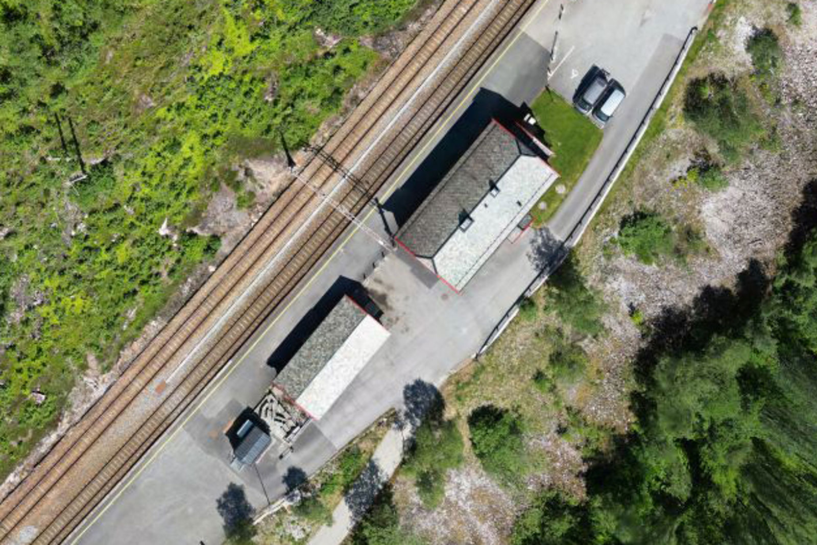 Dronebilde fra Urdland stasjon Foto: Ingebjørg Bernes, Bane NOR