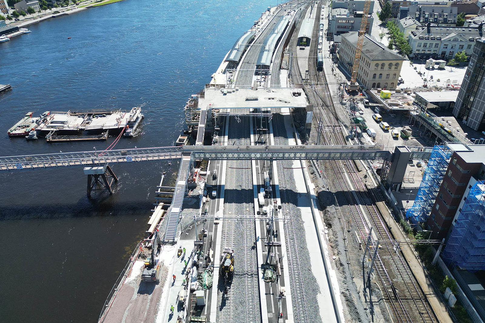 Påsken 2023 forsvant de tre ytterste sporene på Drammen stasjon. Siden da har vi jobbet med å bygge nye spor nærmest elva, og nå er det straks klart for å ta dem i bruk.