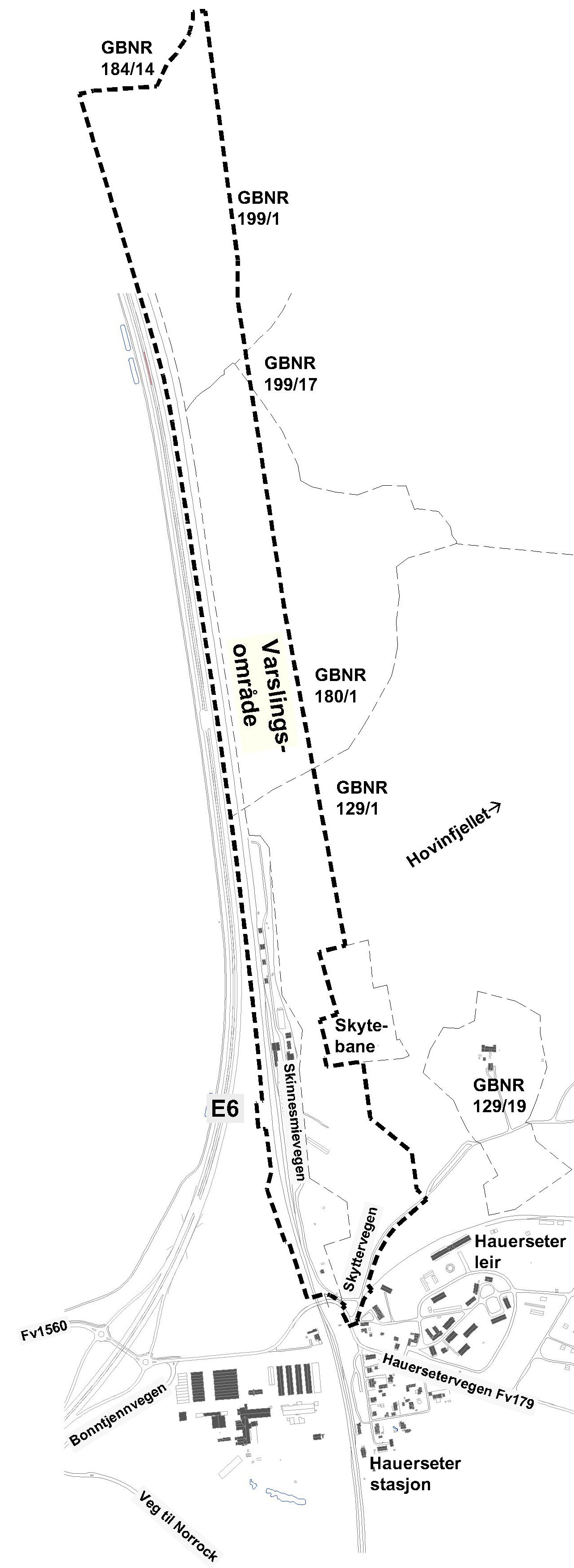 Planområdet strekker seg fra fylkesveg 179 like nord for Hauerseter stasjon og nordover langs Hovedbanen, og det består i stor grad av arealer avsatt til baneformål i kommuneplanen.