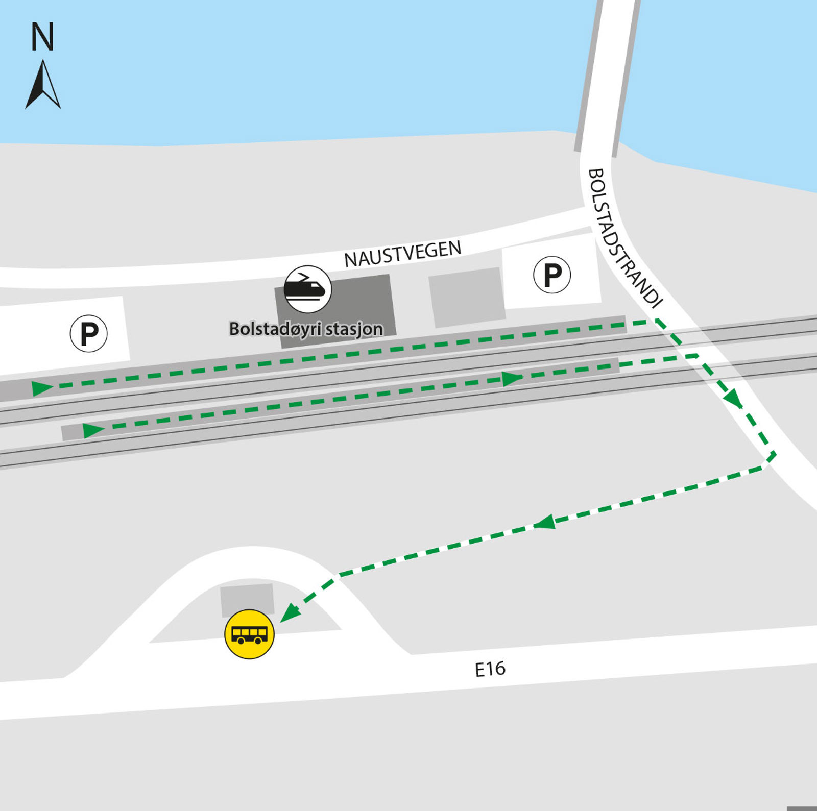 Bussene kjører fra holdeplassen Bolstad ved E16. Gangavstand er ca. 150 meter.