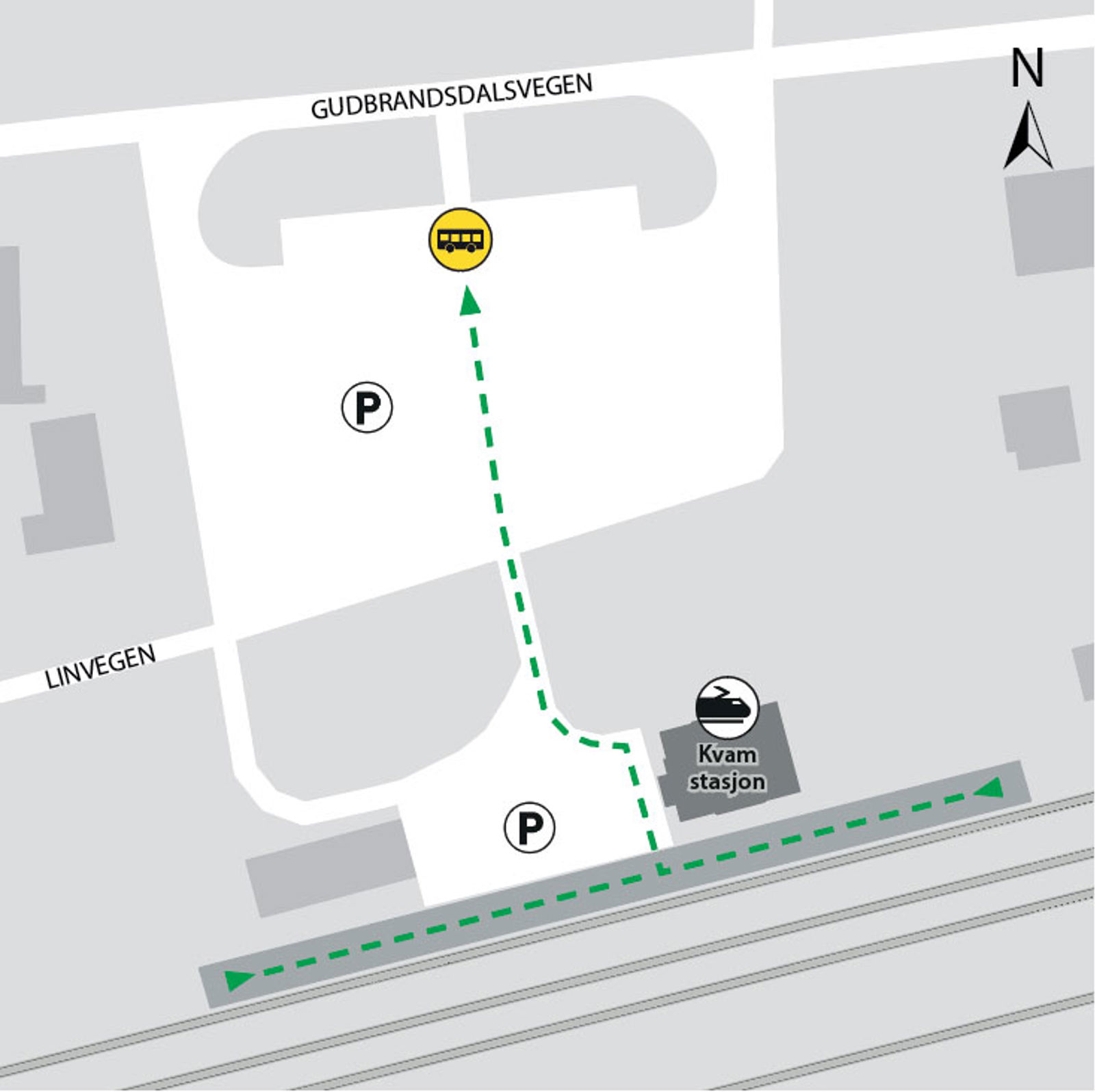 Kvam stasjon i Nord-Fron ligger på Dovrebanen. Herfra kan du ta toget i retning Lillehammer, Oslo S, Drammen, Dombås og Åndalsnes.