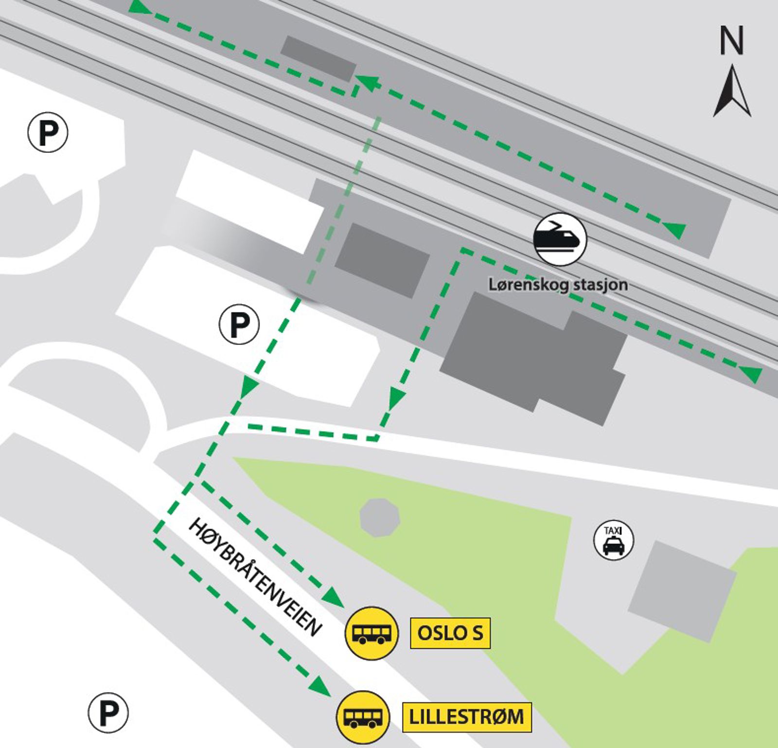 Lørenskog stasjon ligger på Hovedbanen. Herfra kan du ta toget mot Oslo, Lillestrøm, Asker og Drammen.