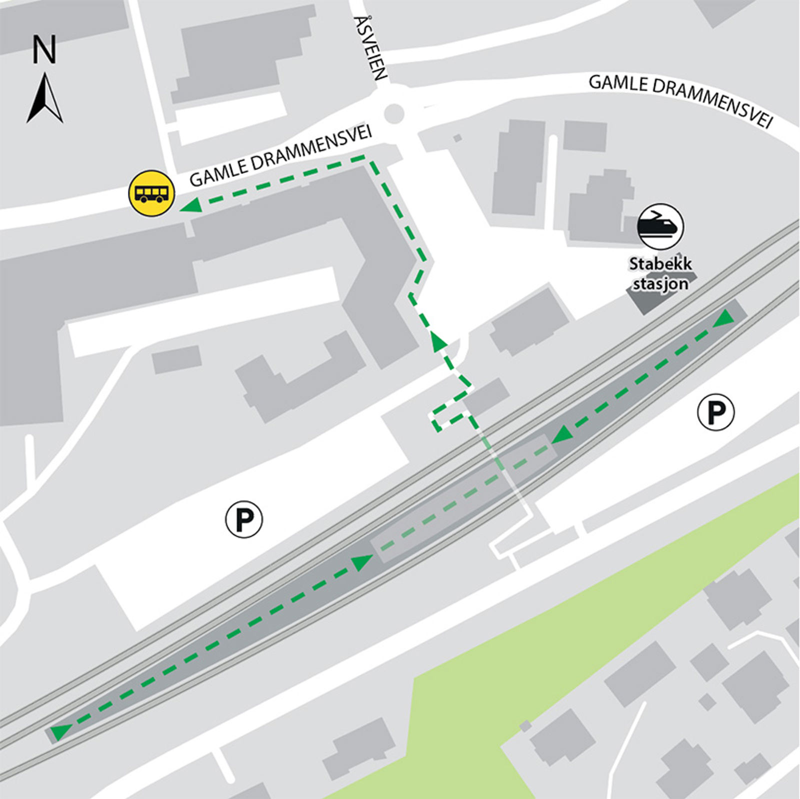 Stabekk stasjon i Bærum ligger på Drammenbanen. Herfra kan du ta toget mot Oslo, Lillestrøm, Asker, Spikkestad, Moss, Ski og Oslo Lufthavn.
