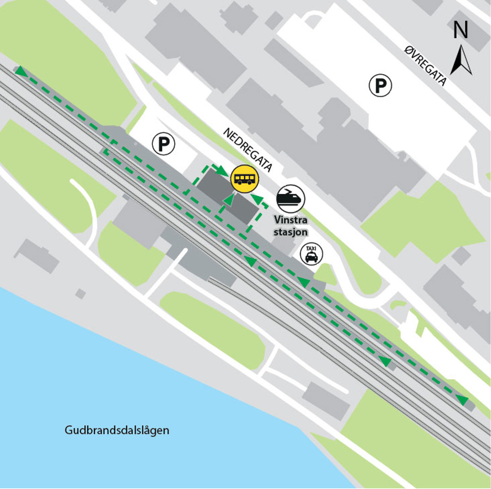 Vinstra stasjon ligger på Dovrebanen. Herfra kan du ta tog mot Oslo S, Oslo Lufthavn, Lillehammer, Dombås og Trondheim S.